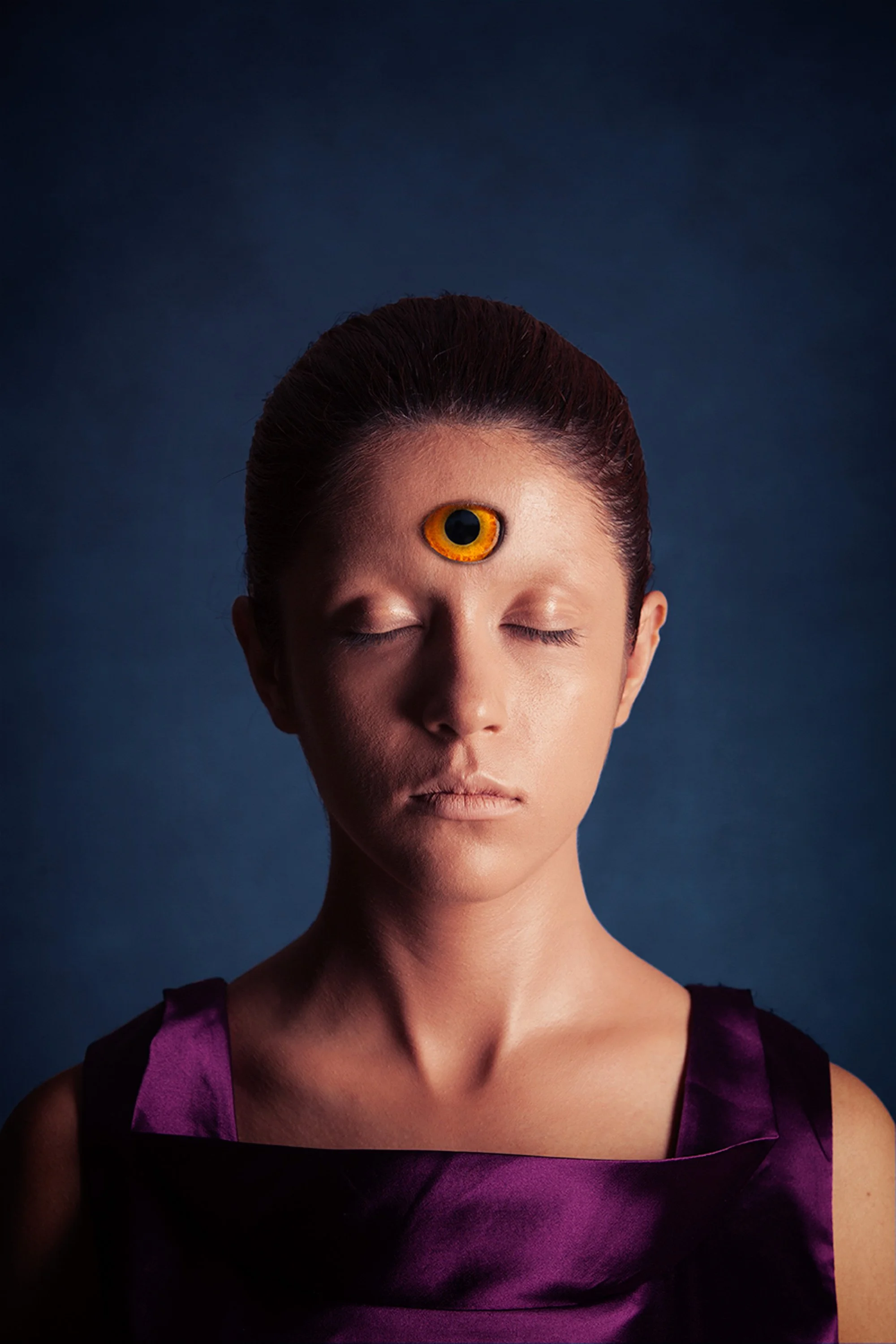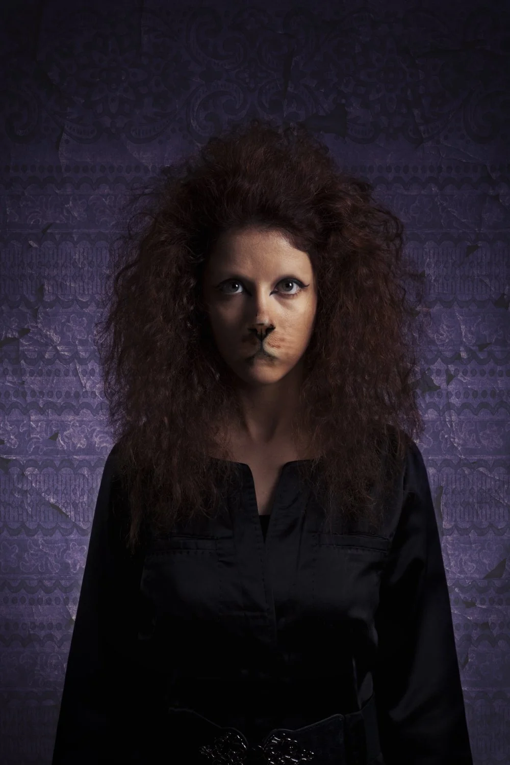 In her precisely manipulated images, the artist stitches the morphological features of animals to her face in order to reach an aesthetic assimilation
